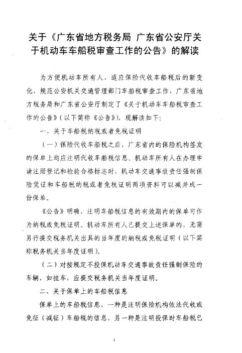 关于《广东省地方税务局 广东省公安厅关于机动车车船税审查工作的公告》的解读